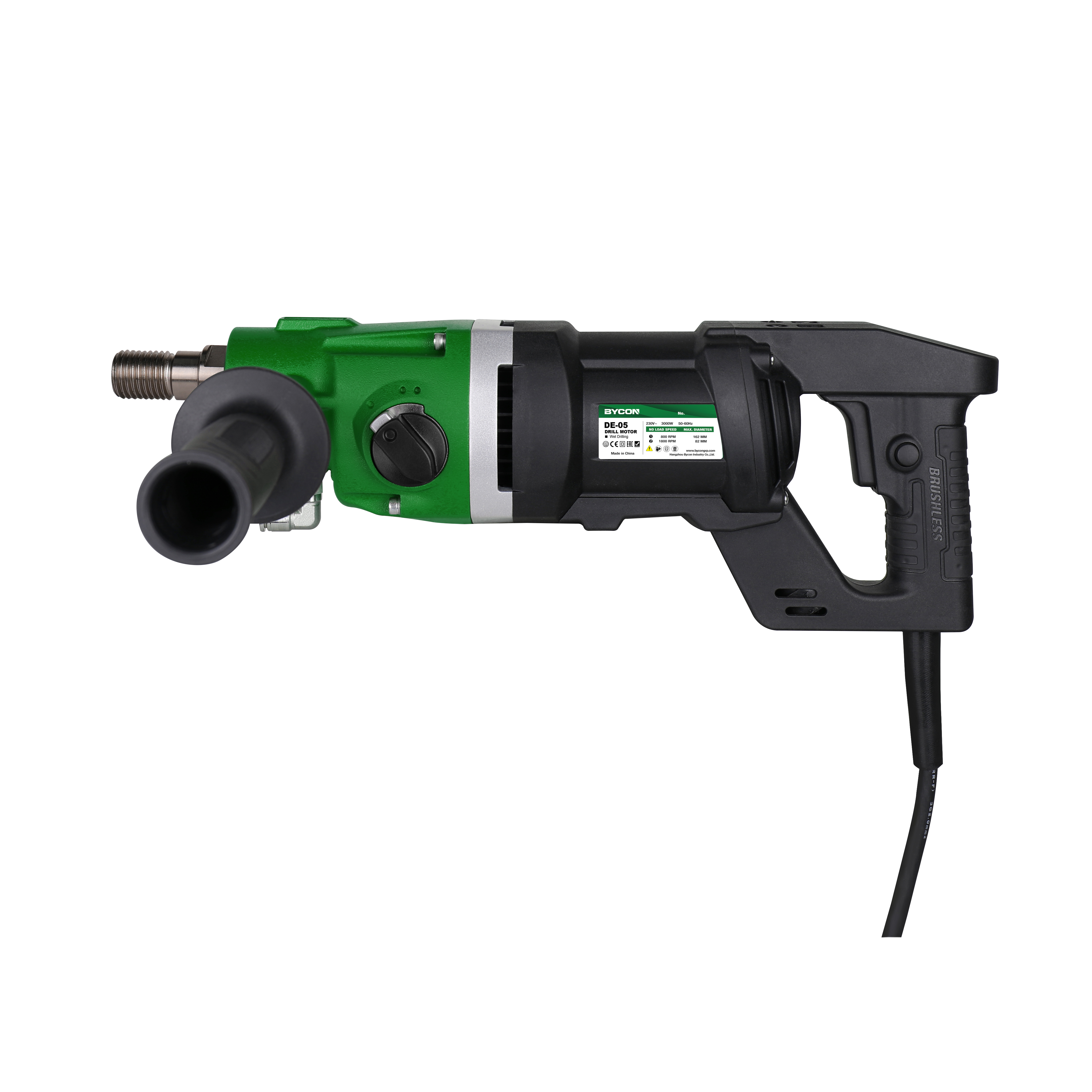 Hangzhou Bycon core drill motor DE-05 is designed for discerning contractors and wholesalers in professional markets. 3000W powerful but compact, suitable for wet core drilling. 1-1/4Unc &1/2" BSP (F) spindle can be accepted most core drill bit in European markets.
